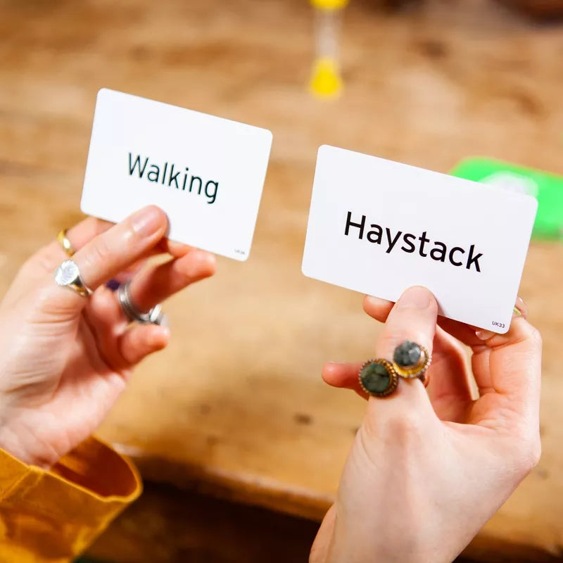 - MAKE IT CHALLENGING: Take it to the next level by adding in new rules such as swap seats after every correct guess or avoid words that begin with a C.